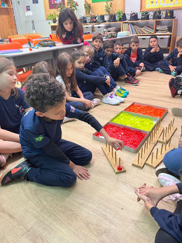 Neste 1º ano escolar, o foco está no processo de alfabetização e no desenvolvimento dos conceitos matemáticos a partir de atividades de letramento, jogos de alfabetização e brincadeiras lúdicas com materiais concretos. O brincar é valorizado e inserido na rotina diária dos alunos, assim como a exploração do parque e dos espaços que propiciam as brincadeiras coletivas. Os componentes curriculares: História, Geografia e Ciências são desenvolvidos partindo sempre do conhecimento prévio dos alunos e nos projetos trabalhados durante o ano letivo. A avaliação é contínua e processual, realizada a partir de atividades diagnósticas mensais. Material didático: livros de literatura e material projeto socioemocional. No currículo em Língua Inglesa, utilizamos a interdisciplinaridade como base. Os alunos têm contato com os conteúdos curriculares dos componentes Ciências, Matemática, Geografia, História, Artes, Educação Física, Música e Literatura. Nosso foco é a aquisição de estruturas de comunicação simples, o refinamento da pronúncia, absorção e aquisição de vocabulário.